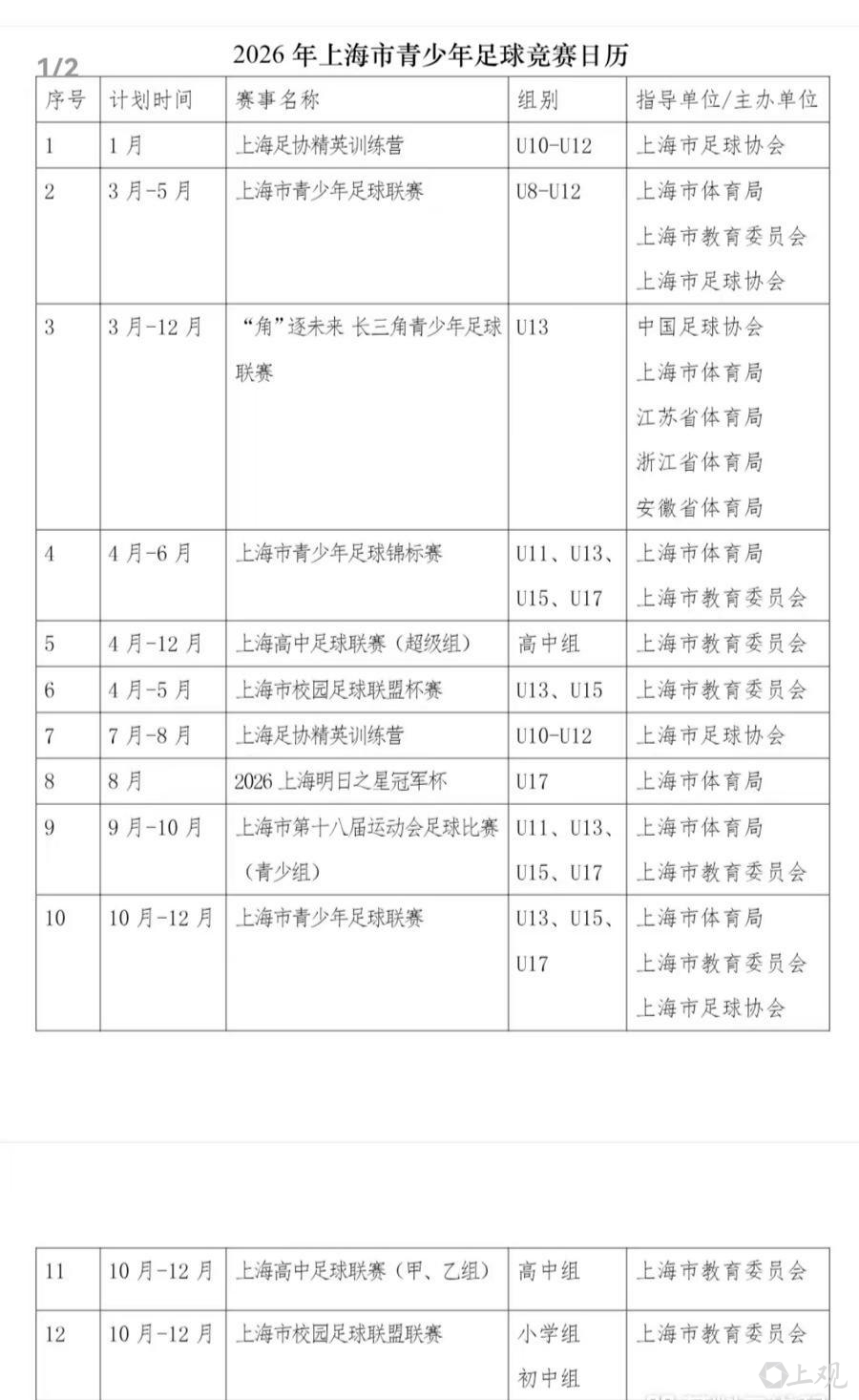 2026年上海市青少年足球竞赛日期发布,其中包括“角逐将来”长三角青少年足球联赛。