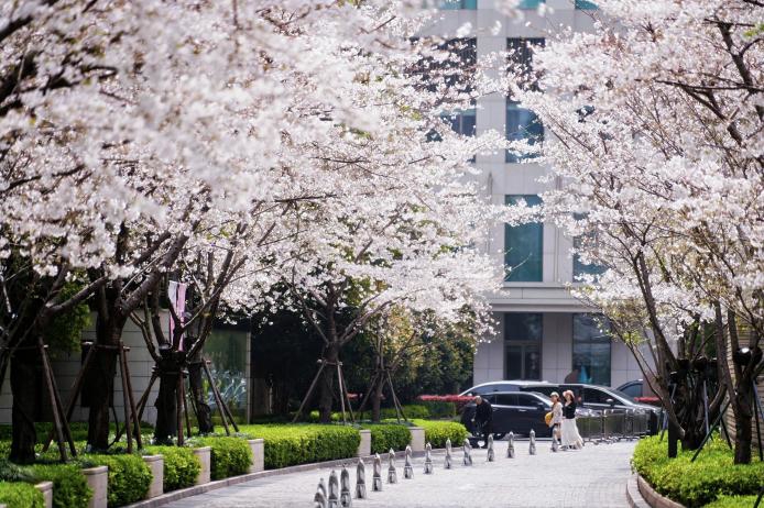 行动兴业太古汇四季流转中独具辨识度的户外空间,愉景正途一年四时各成表象,近日则迎来樱花最盛之时,近百株樱花一起列植、如云似雪,引颈破钞者插足春色鼓胀的赏花之旅。