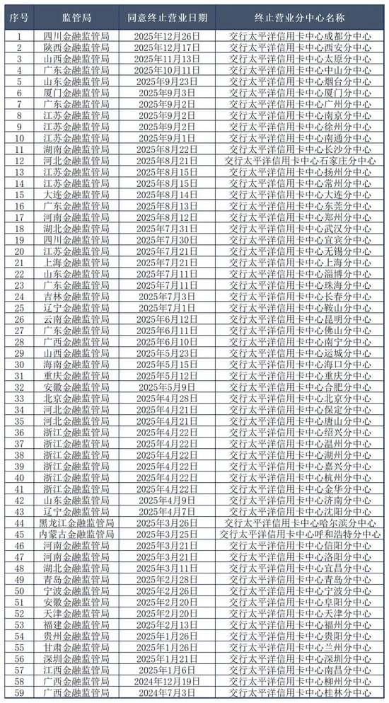 Wind数据显示,2025年以来,全国已有超过60家信用卡分中心陆续关停。其中,东莞配资网站交行卡中心自2025年以来已裁撤50余家地方分中心,涉及北京、上海、江苏、广东、湖南、福建、山东等30个省区市,进入2026年,关停步伐依旧——1月4日,四川金融监管局批复同意交行卡中心成都分中心终止营业。