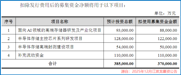 为进一步提升竞争力,江波龙在2025年12月推出37亿元定增计划,用于加码AI高端存储、主控芯片及高端封测。
